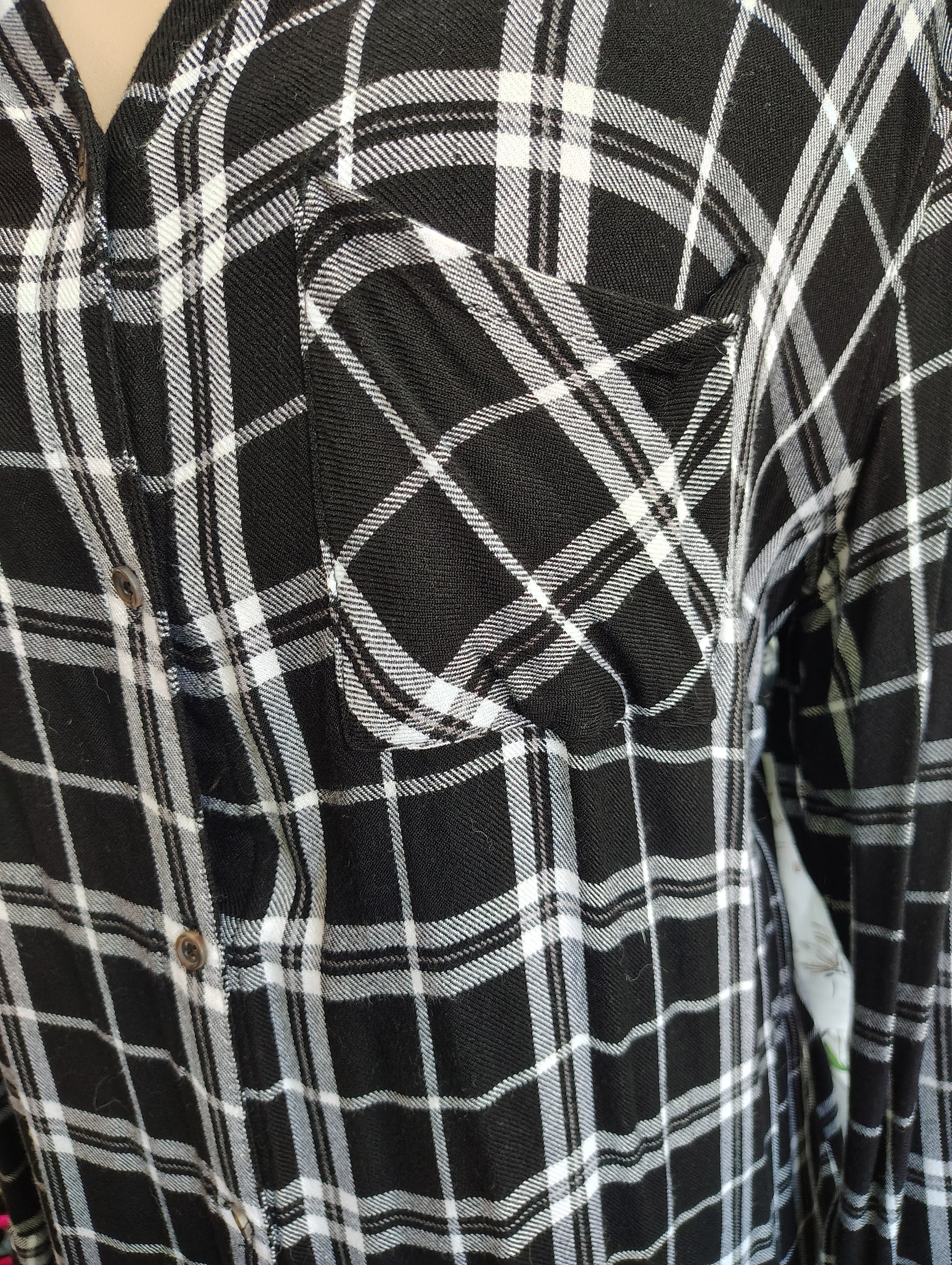 Ava & Viv black and white plaid tunic button front shirt 4x
