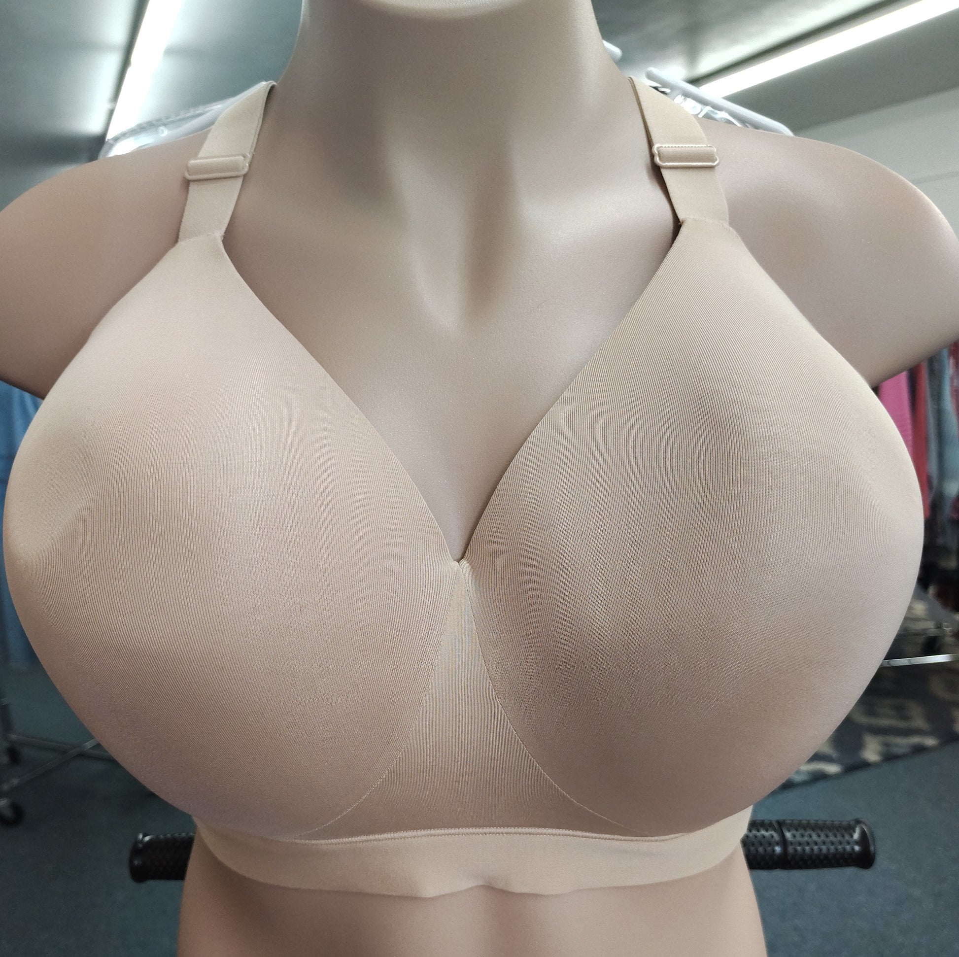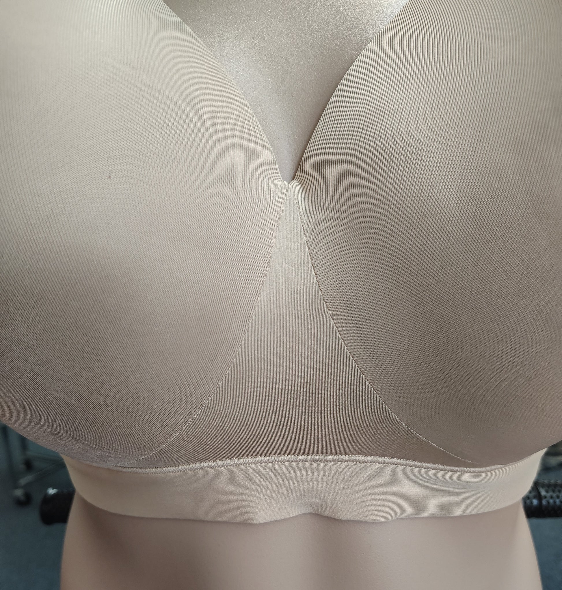 Cross back, molded cups in front, pull on with no wires. I have this style and size in other colors listed.