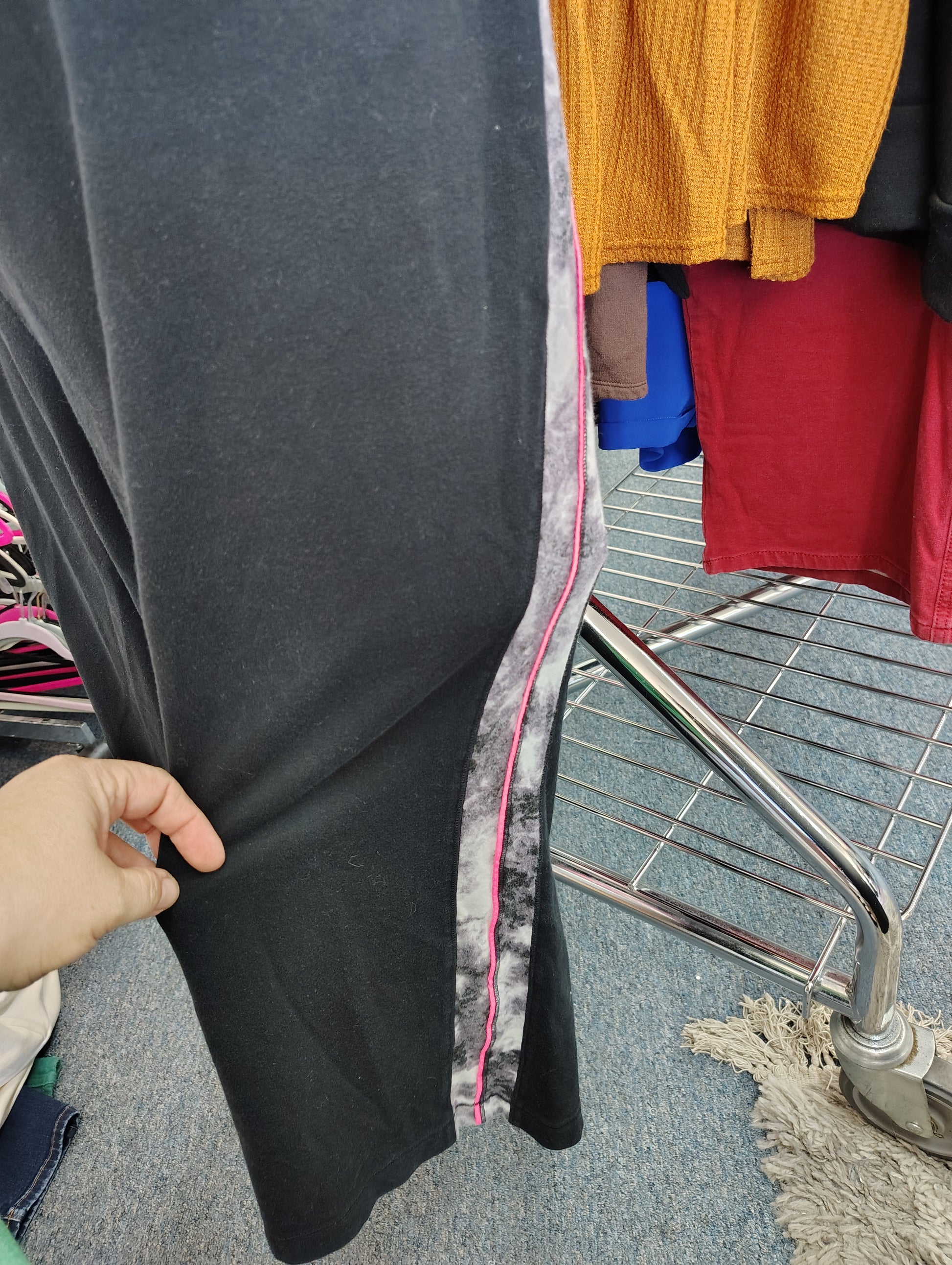 Elastic waistband in tie dye as well as down the sides, slits on the sides at the bottom