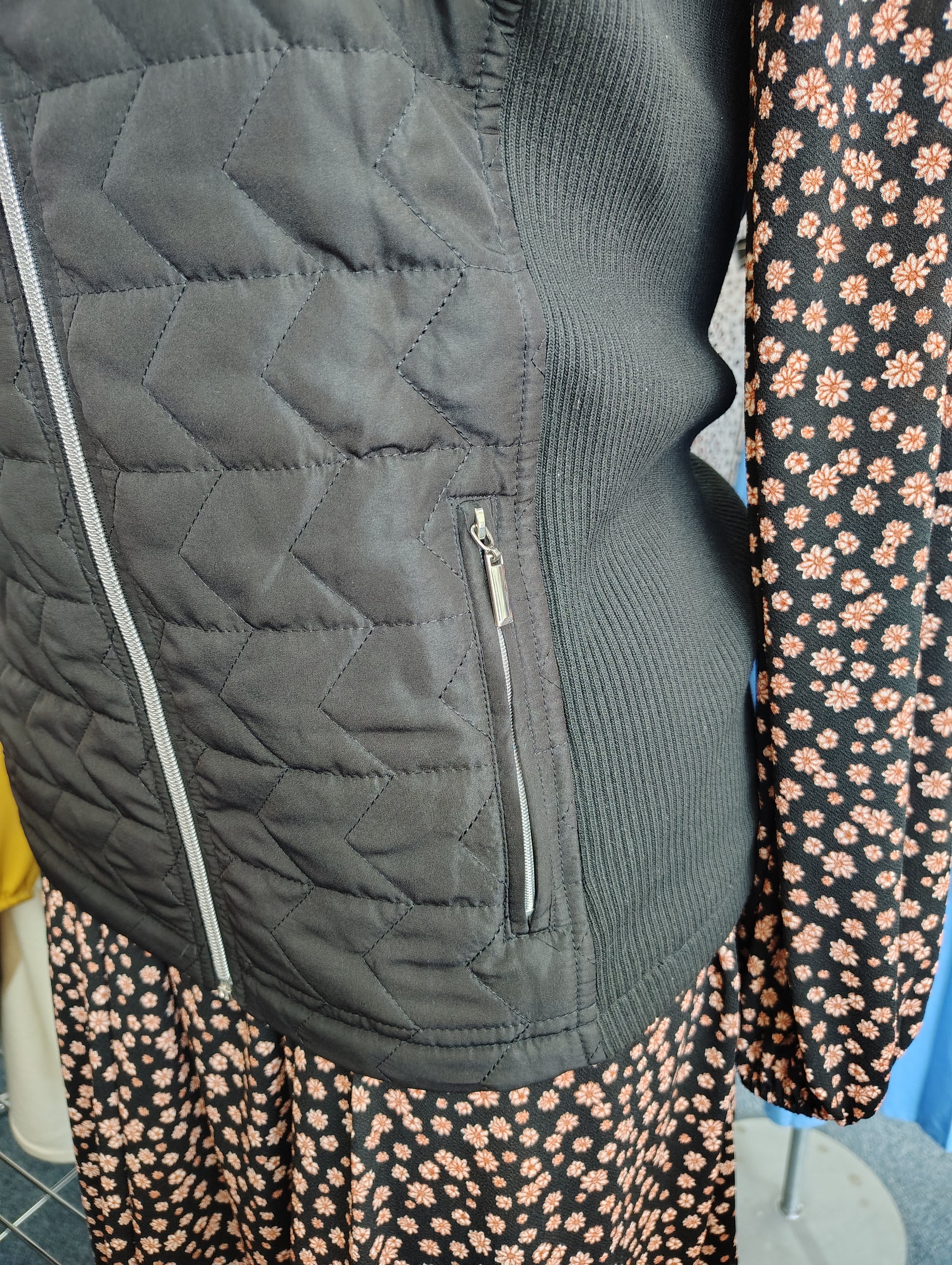 Zip front, stretchy sides.