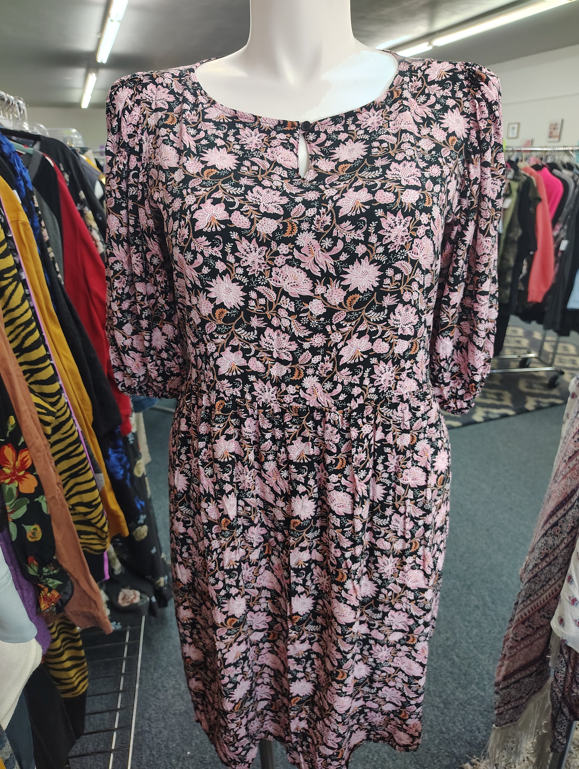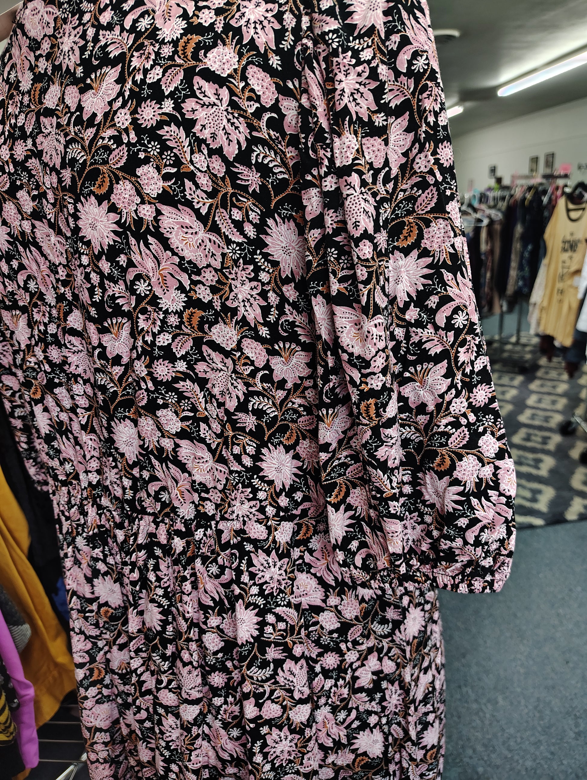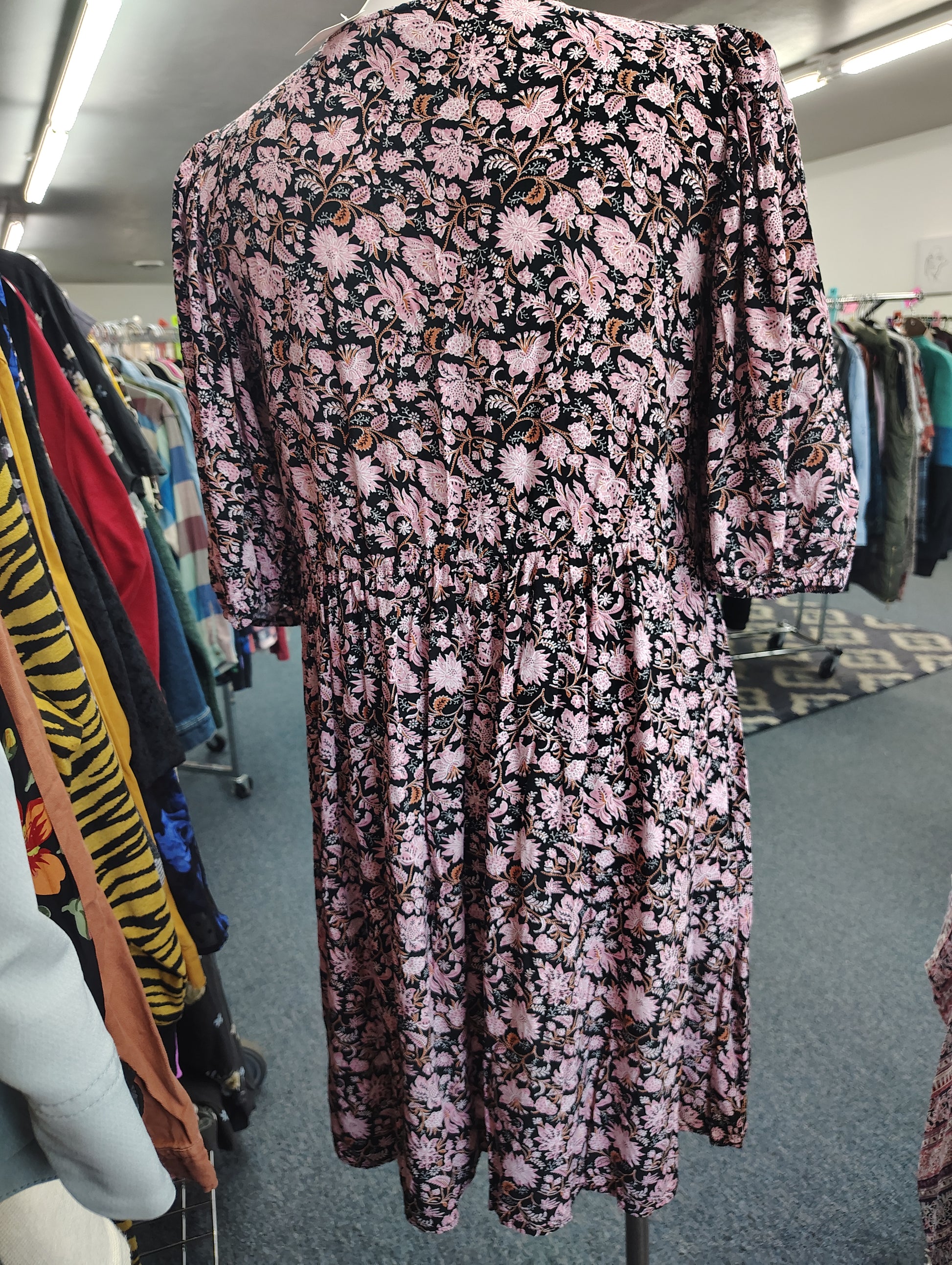 Labeled M 14/16, I think Ellos does sizing where S is a size 12, M is 14/16, L is 18/20, XL is 22/24. So this is like a 1x, but since it doesn't have stretch it runs more like a 14.