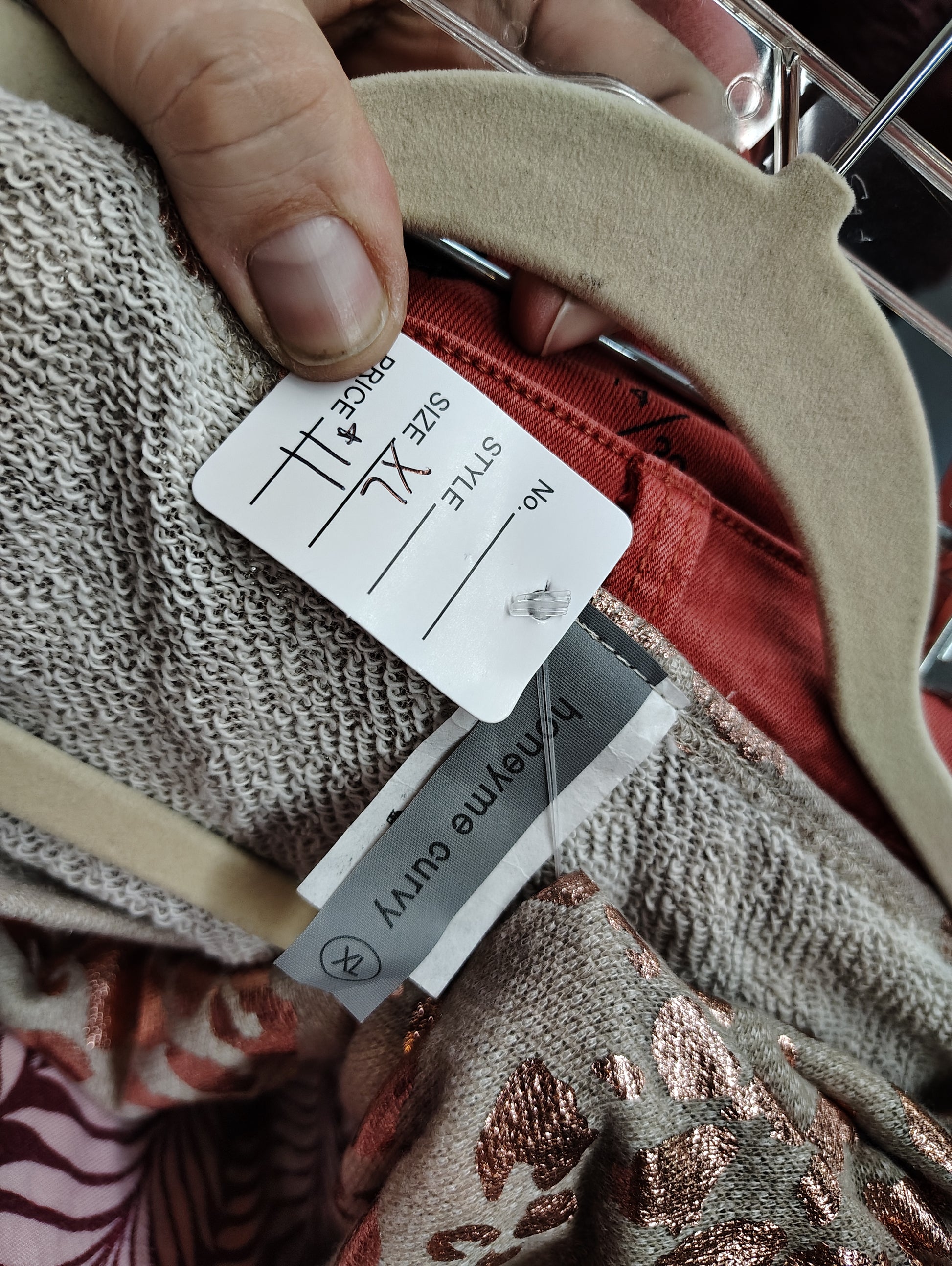 3/4 length sleeves, longer length, kind of rose gold shiny print
