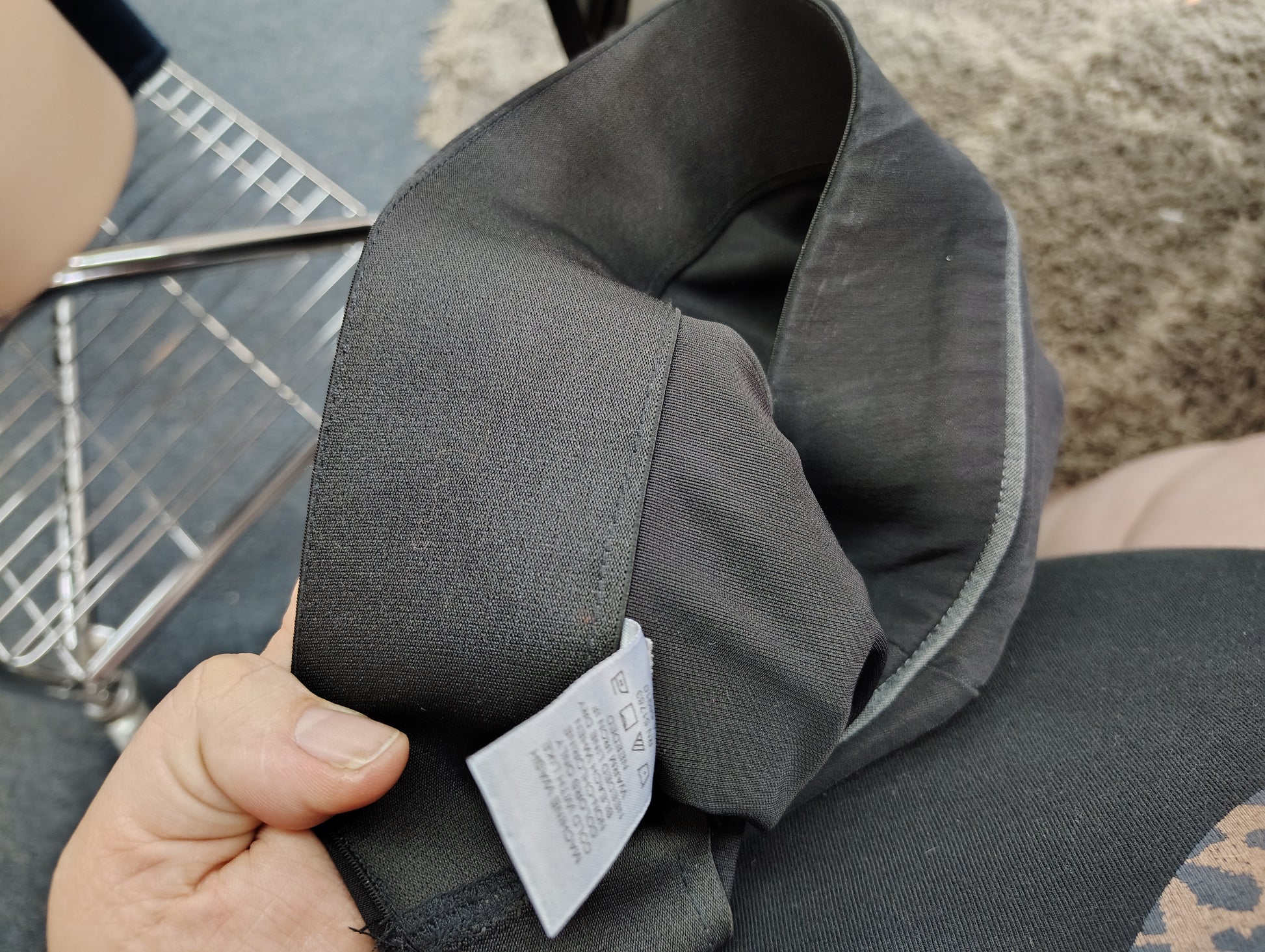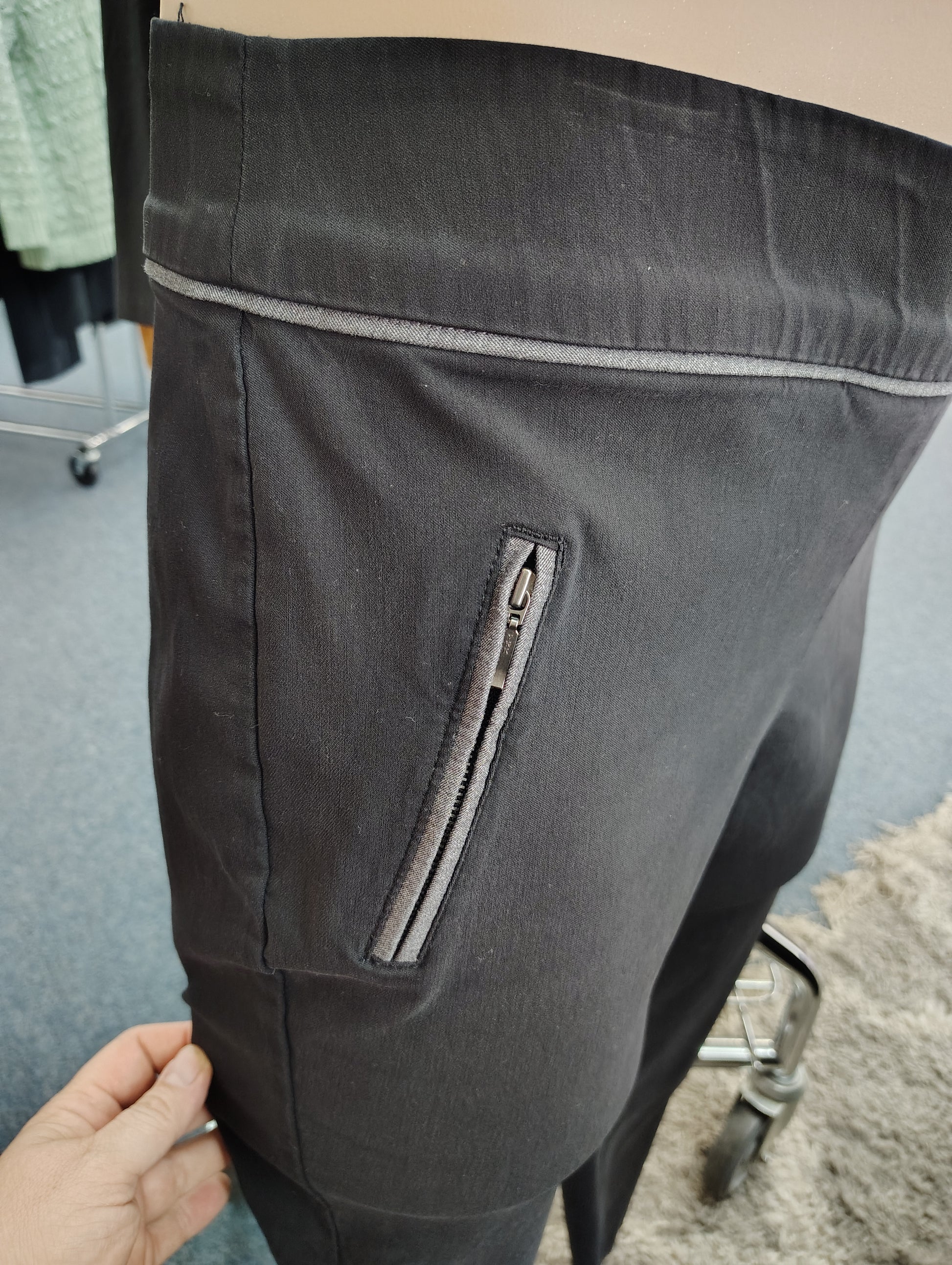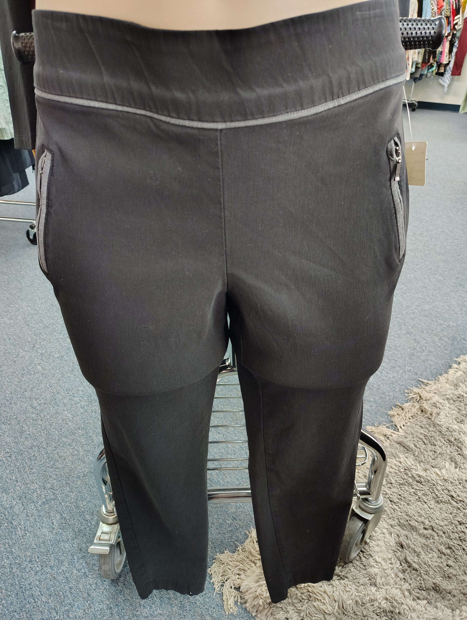 Gray accents on the pockets, pull on elastic waist, very stretchy