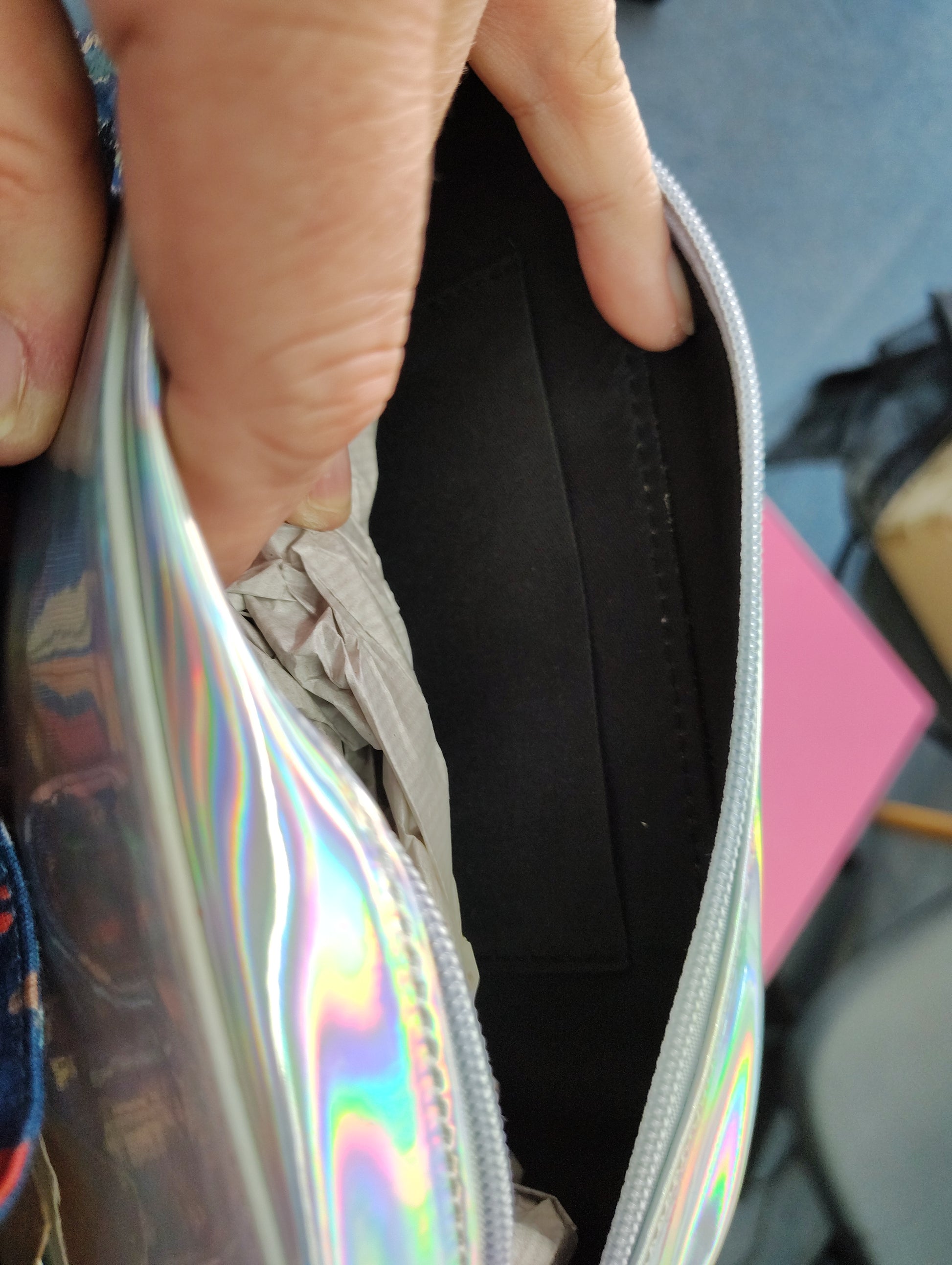 Retro cell phone zip top bag new shiny silver