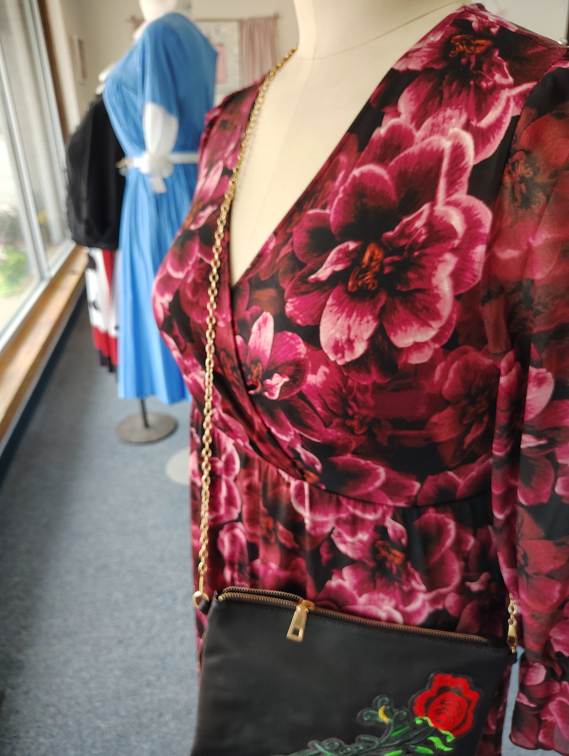 Cross v-neck, sheer long sleeves with elastic. Empire waist, stretchy. Super cute for the Fall!
