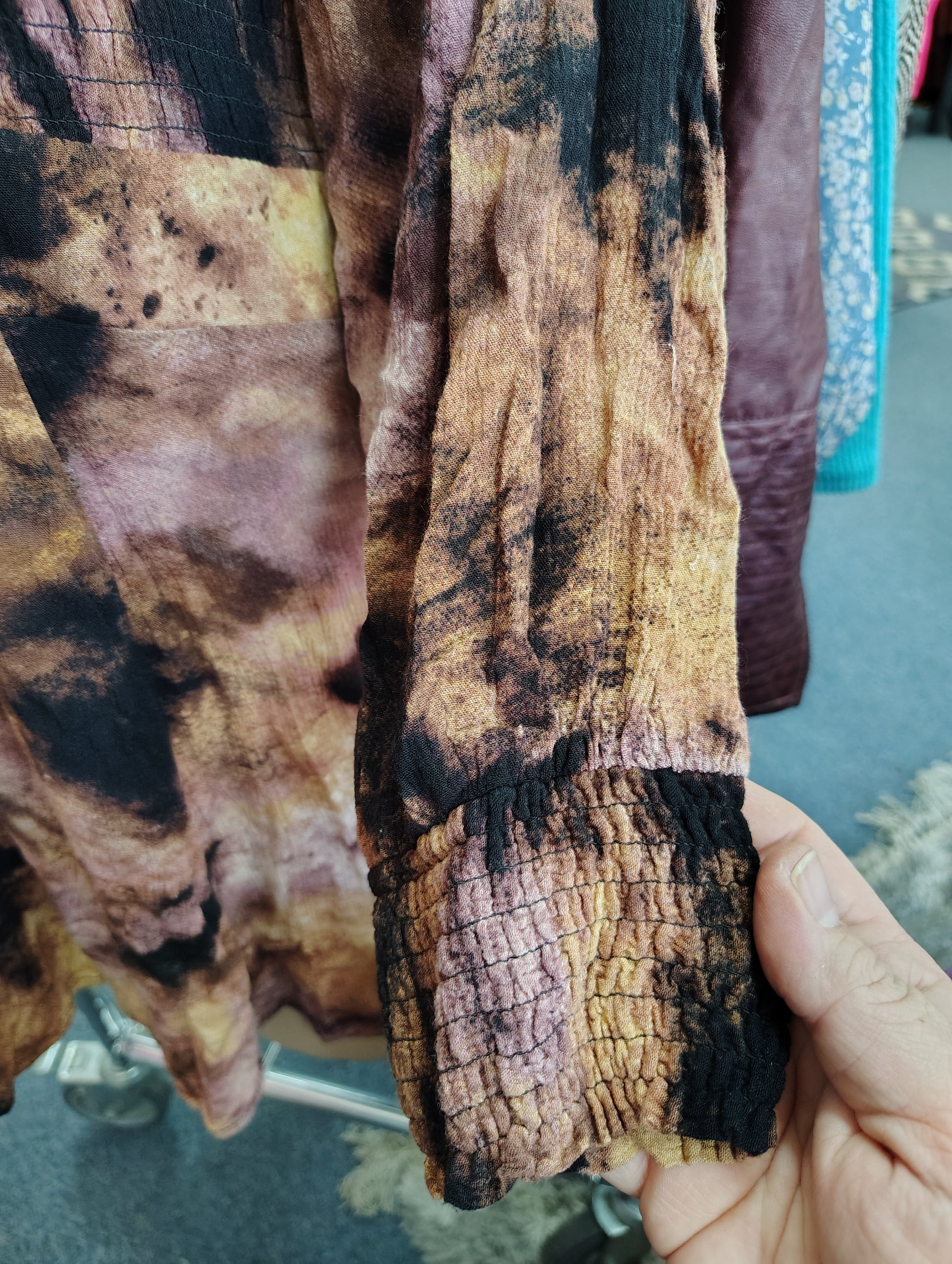 Non stretch other than the smocked chest. Gathering at the wrist on the sleeves.