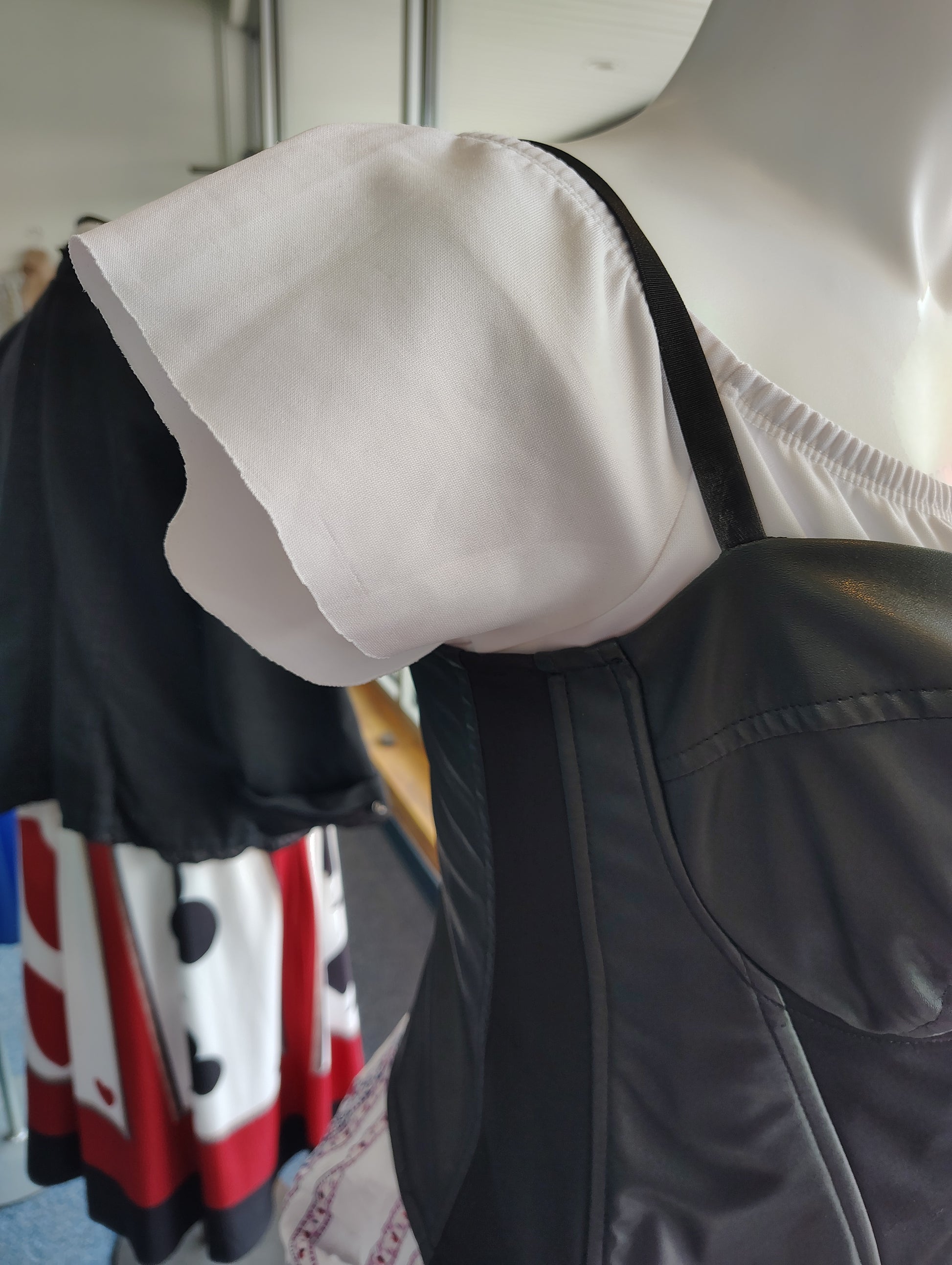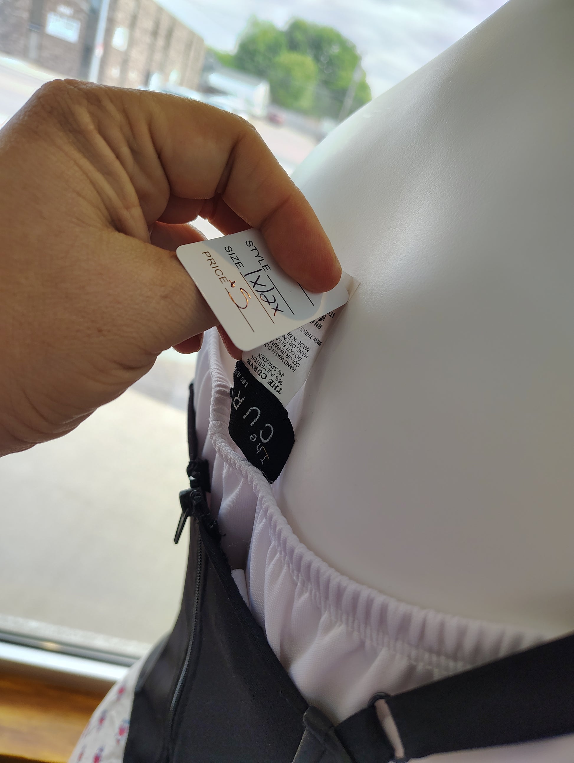 It has some wear in the skirt, just weird lines in the fabric. I cute the sleeves so they are ruffly instead of super tight like they were. Labeled a 3x, would best fit a 1x to smaller 2x.