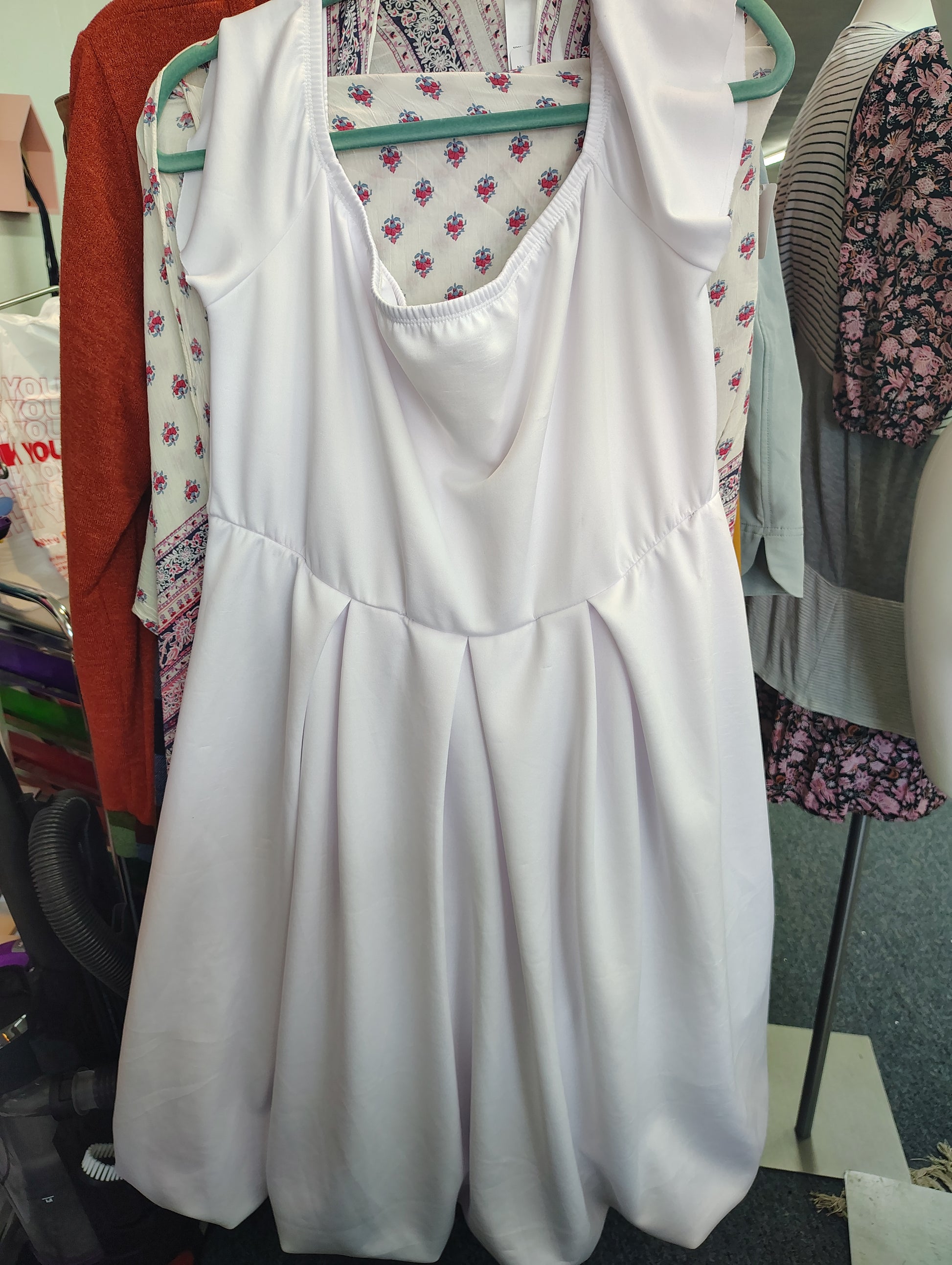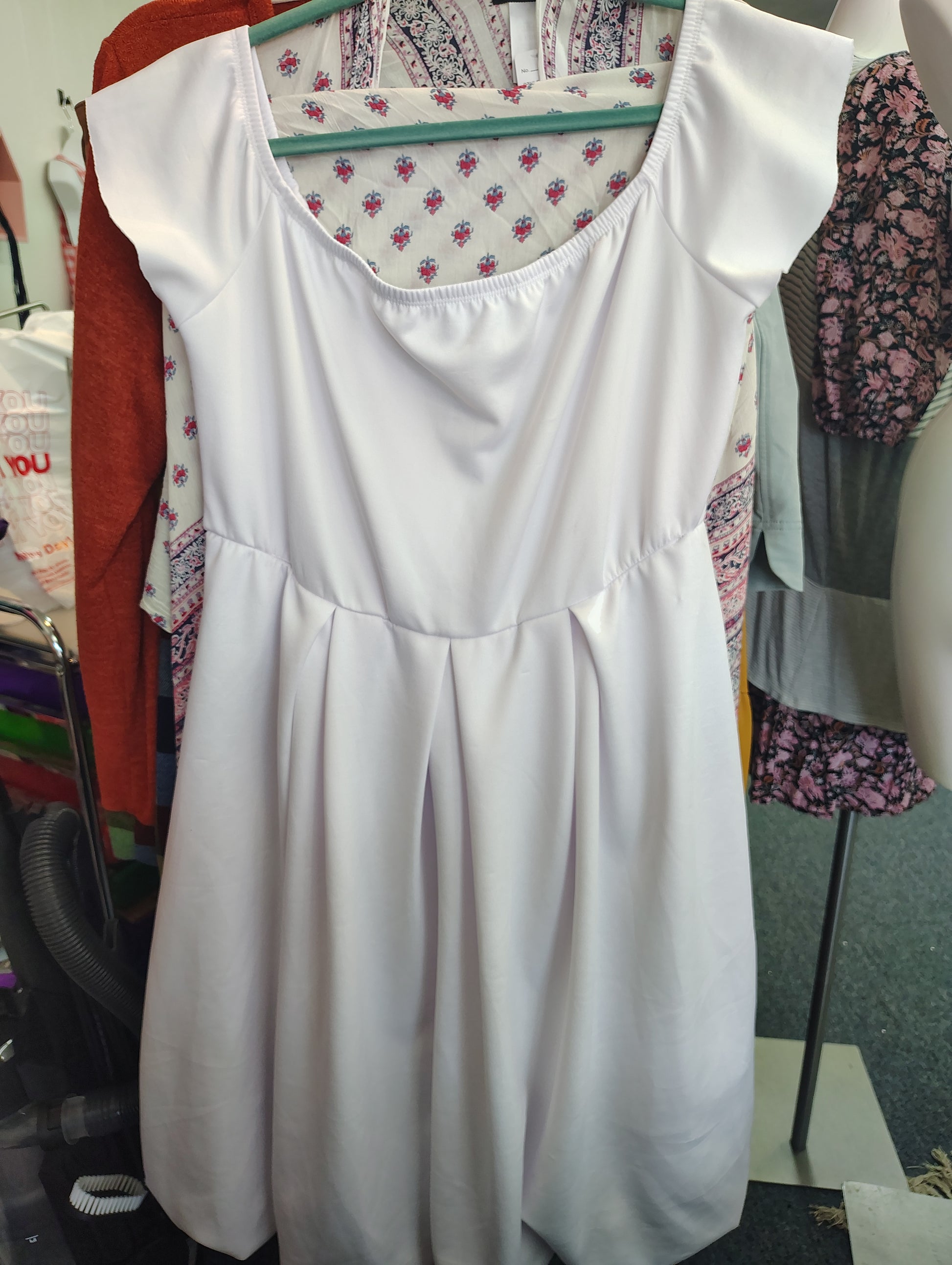 White bubble skirt ruffle sleeve dress aline size 1x